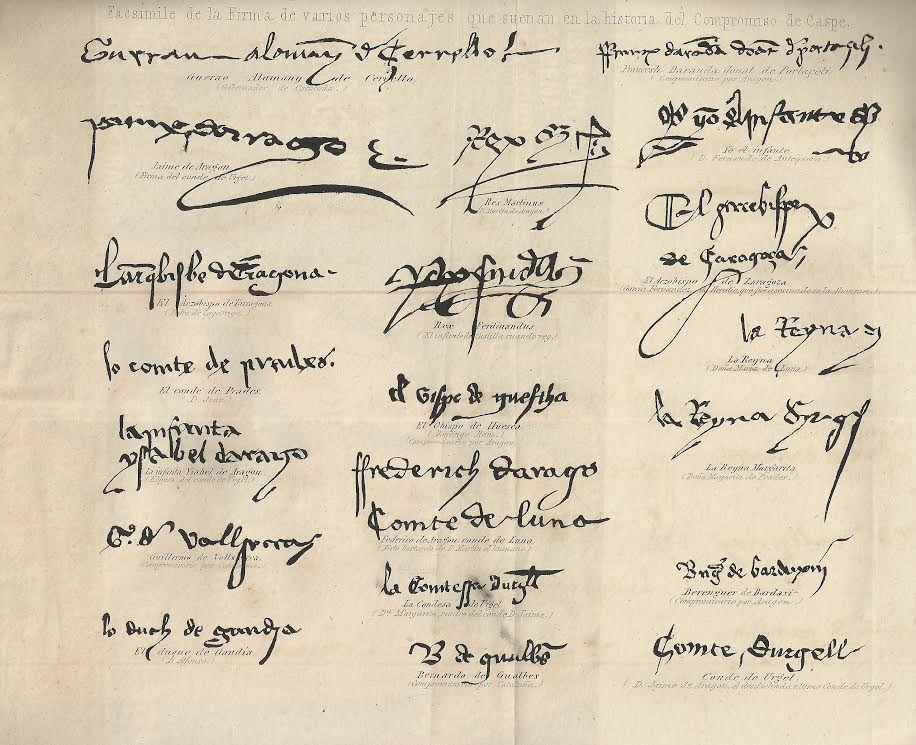 La h. pleg. es lit. de la firma de varios personajes de la hsop del Compromiso de Caspe.
