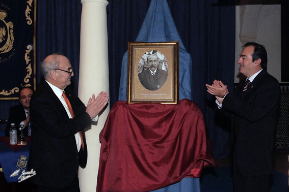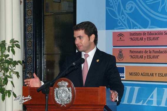 Intervino en primer lugar el Director del Instituto y Secretario de la Fundación, Francisco Ortiz, para presentar la figura de D. Antonio J. Domínguez, que fue director del centro y rector del antiguo Real Colegio entre los años 1863-1875 y 1883-1884. Glosó su figura y se refirió también a algunas de las realizaciones que tuvieron lugar en esos años, así como a la gestión de la política desamortizadora de aquellos tiempos. En sus palabras también agradeció al Alcalde y a los miembros del actual gobierno municipal, las gestiones realizadas para desbloquear el asunto de las esperadas obras en el Aguilar y Eslava, que se han anunciado dentro del plan O.L.A.(Oportunidades Laborales en Andalucía) de la Consejería de Educación. Al término de sus palabras el bisnieto del homenajeado, Francisco Navarro Domínguez, procedió a descubrir un cuadro del antiguo director, que pasará a la "Galería de Directores" del Aguilar y Eslava. Y agradeció este homenaje con unas sentidas palabras.