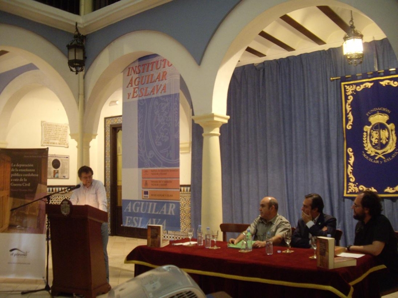 Junto al autor, Manuel Morente, se encontraban el presidente de la Fundación Aguilar y Eslava, Salvador Guzmán; el gerente de la Editorial El Páramo, Antonio de Egipto Suárez y el profesor José Luis Casas Sánchez. El libro "La depuración de la enseñanza pública cordobesa a raíz de la Guerra Civil", galardonado con el Premio de Ensayo Histórico Corpus Barga en 2009, que ha sido editado por la editorial cordobesa El Páramo, ofrece un panorama social e histórico de la vida cotidiana durante la Guerra Civil y el primer franquismo en Córdoba, que permite entender las claves de aquel proceso en sus dimensiones social, política, institucional, y de cuáles fueron las circunstancias que operaron en la destrucción de la vanguardia educativa provincial. Entre sus páginas puede conocerse de manera precisa cómo fue el proceso de depuración de la enseñanza pública tras la Guerra Civil Española y en particular cómo afectó a los maestros y profesores de la escuela pública que impulsó la II República en la provincia de Córdoba.