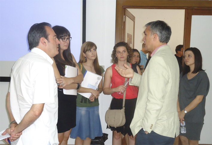 El grupo de estudiantes de Máster de Museología de la Universidad de Granada estaba formado por: Myriam Llorens Liboy, Mª Angélica García Ortega, Carlos Sánchez Barrios, Mª Lucia Blanco López , Nadia González Palomo y Lorena Martín Cifuentes, que presentaron el Proyecto titulado “Museo Aguilar y Eslava: Análisis. Programa arquitectónico y expositivo” y estaban compañados de su tutor, José Escudero Aranda, Conservador del Museo Arqueológico de Córdoba.