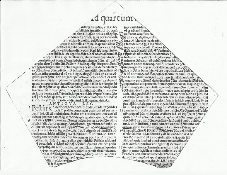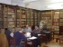 Como botón de muestra de esa futura exposición, donde hallaremos desde un pliego de cordel hasta una entrada de una novillada celebrada en Cabra años ha, adelantamos la historia de "El patrón del bonete", que fue localizado por Manolo Gómez mientras esperaba turno para que Eusebio Molina hiciese la fotocopia de la portada del libro, en la que posteriormente, en el reverso, son anotados todos los datos de la catalogación que servirán en un futuro a su informatización. La espera en la reproducción le lleva a Manolo a hojear los libros en la mesa y a localizar algún que otro "tesoro". El papel suelto, que no era otra cosa que una hoja de libro escrita en latín, señalaba claramente la silueta de un bonete. Después vimos que había manuscrito el siguiente texto: "este es el molde del paño del bonete". Efectivamente, estábamos ante un patrón para confeccionar esta prenda. Ignoramos el destinatario o los destinatarios de la misma, pero estamos en la investigación. La dinámica de Antonio Arévalo le hizo sacar una fotocopia del hallazgo y llevársela a casa para confeccionar, en cartón, esta prenda que suelen utilizar en su cabeza los eclesiásticos y antiguamente, los colegiales y graduados. La verdad es que a la siguiente jornada del Taller se presentó Antonio con un bonete ya confeccionado. Resultaba, a la vista del patrón, bastante voluminoso, aunque la práctica que fuimos haciendo colocando el birrete sobre nuestras cabezas se ajustaba estupendamente; eso sí, nuestras pintas provocaban las risas más estrepitosas, incluso en el que ejercía de modelo. En fin, ratos de relax que sirven de estímulo en el trabajo.