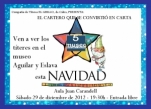 actualidad 28.12.12 Títeres en el Museo Dentro de la Actividades de la Purísima, de Navidad y en conmemoración del 5º Aniversario del Museo, el sábado 29 de diciembre, en el Aula Juan Carandell del Museo Aguilar y Eslava, la Compañía de Títeres "El Grillo" pondrá en escena la obra "El Cartero que se convirtió en carta", será a las 19:30 horas y la entrada es libre y gratuita.