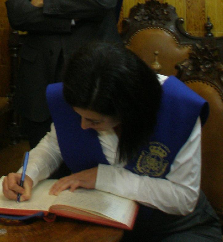 Como podemos observar, se trata de una brillante carrera, en la que una mujer joven se va incorporando por méritos propios a la carrera judicial. No dudo que seguirá avanzando en ella, sirva quizá una referencia que, aunque pueda ser una casualidad, nos aventure a pensar en los altos cargos que le esperan. El que ahora es presidente del Consejo General del Poder Judicial y del Tribunal Supremo, D. Carlos Dívar, ejerció de Juez en Castuela. Actual destino de nuestra Alumna Benemérita.