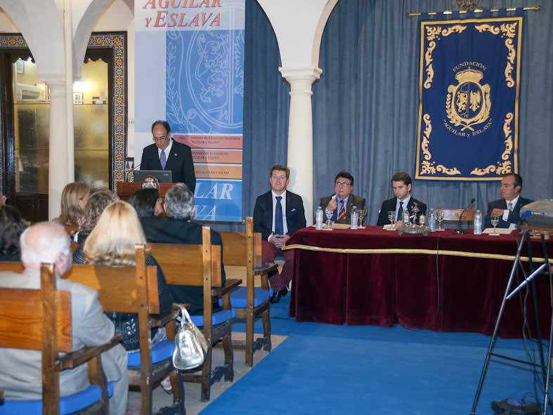 La presentación del conferenciante corrió a cargo del Vicedirector y Presidente de la Fundación Aguilar y Eslava, Salvador Guzmán. Francisco Pacheco Isla es Presidente de la Fundación Puerta de América de Sanlúcar de Barrameda y de da la circunstancia de que la Fundación Aguilar y Eslava, participa desde su nacimiento en 2011 en su patronato y que tiene como uno de sus objetivos principales promocionar la celebración en Sanlúcar de Barrameda del V Centenario de la primera Vuelta al Mundo. Francisco Pacheco hizo un recorrido ilustrado con imágenes por la historia de la comercialización de las especias que condujo a la realización de la primera circunnavegación de la Tierra, una de las mayores hazañas del hombre en todos los tiempos.