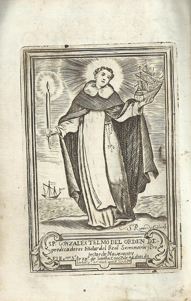 Grabado con la imagen de San Telmo al verso de la anteportada