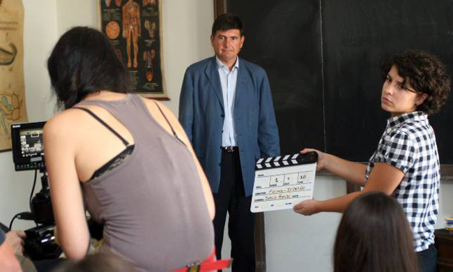 El editor y exministro ya había participado brevemente en algunos documentales, escrito el guión de otro sobre los documentos de Tombuctú y también formó parte en una serie sobre arqueología de TVE. Pero la ficción nunca había llamado a su puerta. "Para mí fue una sorpresa la llamada de La Claqueta ofreciéndome este personaje de ficción para el que he tenido mucha libertad", explica Pimentel, quien trabajó en un aula con un grupo de alumnos como figurantes "que aguantaron estoicamente" las largas horas de rodaje.