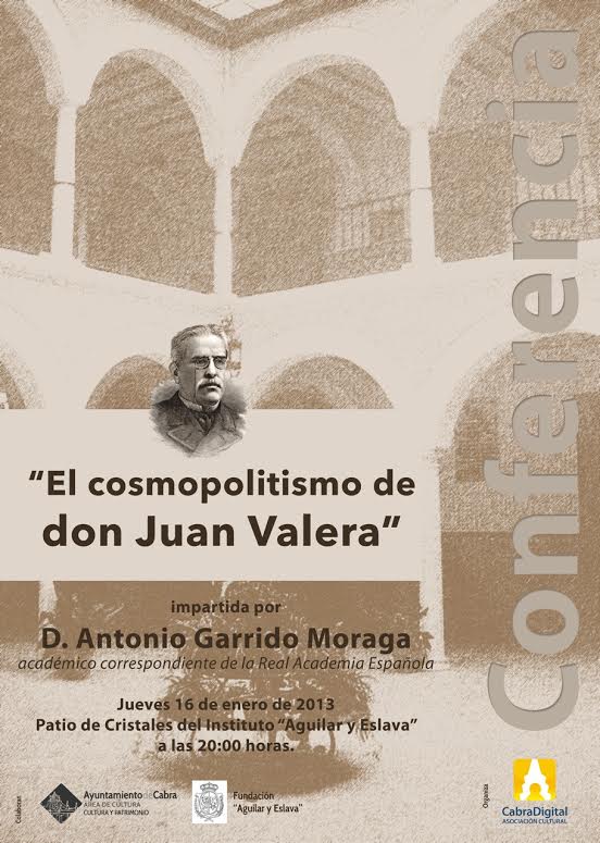 actualidad 11.01.14 Conferencia del académico Garrido Moraga sobre Valera en el Instituto El próximo jueves, 16 de enero tendrá lugar en el Patio de Cristales del Instituto-Fundación Aguilar y Eslava una conferencia titulada "El cosmopolitismo de don Juan Valera" que impartirá el académico y escritor Antonio Garrido Moraga.