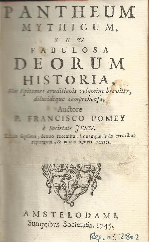 Pantheum Mythicum seu Fabulosa deorum historia : hoc epitomes eruditionis volumine breviter dilucidèque comprehensa / auctore P. Francisco Pomey, é Societate Jesu. -- Editio septima... -- Amstelodami : sumptibus Societatis, 1745