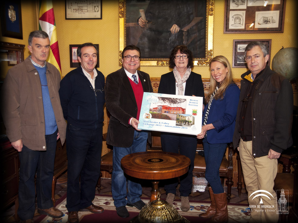 El viernes, 14 de febrero tuvo lugar la recepción oficial que se realizó en el Salón de Plenos del Ayuntamiento de Cabra y contó con la presencia del Alcalde, Fernando Priego acompañado por el Director del IES Aguilar y Eslava, Francisco Ortiz, el Presidente de la Fundación "Aguilar y Eslava" Salvador Guzmán y miembros del Equipo Docente del histórico Centro Educativo egabrense y los propios docentes procedentes de Manchester.