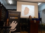 El recital fue conducido extraordinariamente por la saigonista Carmen Fuentes Güeto. Y no solamente se leyeron poemas de poetas de nuestra literatura (Ángel González, Pablo García Baena, Miguel Hernández, María Rosal o Carmen Ramos, entre otros) en las voces de Marta Marín, Irene Zurita, Andrea Herrera, Susana Polo, Toñi Servián e Inma Granados; sino también se escucharon poemas escritos por algunos de los participantes, como fue el caso de Ana Romero, Jorge Fernández, Manuel Guerrero, José Manuel Pozo y Sensi Budia, quien también acompañó con su piano el recitado de los poemas. |