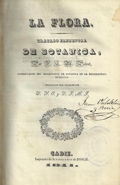 La Flora : tratado elemental de botánica / por J.L.M. Poiret ; traducido del frances por D.F.O. y D.J.M.J. -- Cádiz : [s.n.], 1841 (imprenta de la viuda e hijo de Bosch)