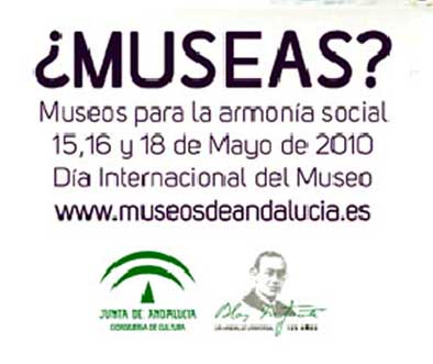 LOS MUSEOS PARA LA ARMONÍA SOCIAL, es el lema que ha elegido el ICOM para celebrar el 18 de mayo, Día Internacional del Museo. Y los Museos y Conjuntos Arqueológicos de Andalucía se suman a este lema y celebración con un variadísimo programa de actividades para todos los gustos y para cualquier edad. Actividades para hacer con toda la familia, padres, madres, abuelos, hermanos, etc.. y descubrir el riquísimo patrimonio andaluz.