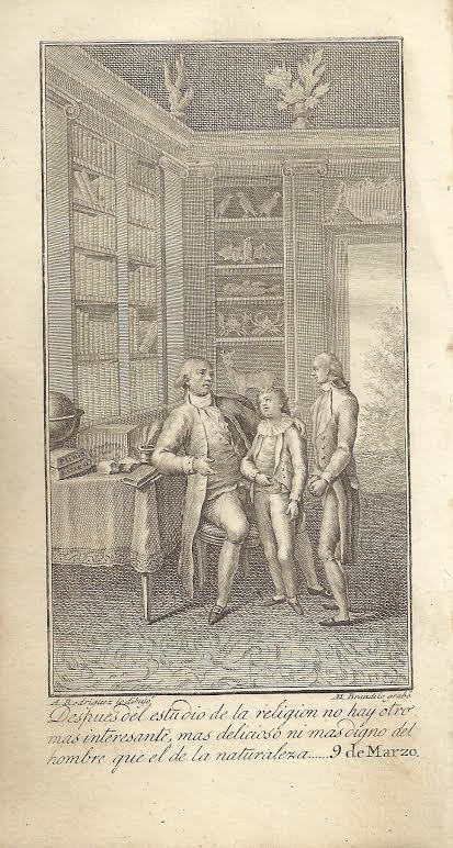Hoy traemos como Libro de la Semana los seis tomos de “Reflexiones sobre la naturaleza” escritas en alemán para todos los días del año por Christoph Christian Sturm, aumentadas y dadas a la luz metódicamente en francés con el título “Lecciones de la naturaleza” y traducidas al castellano. Se trata de una cuarta impresión realizada en Madrid en 1826 (Imp. de D. Miguel de Burgos). En cada tomo se recogen dos meses del año, habiéndose incorporado en esta edición dos láminas “para el debido conocimiento y conveniente aplicación del sistema planetario y globo terrestre”.
