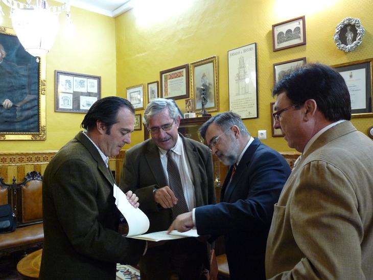 Tras su intervención, el profesor Lacomba, acompañado del prof. Calvo Poyato, del Presidente de la Fundación y del Director del Instituto, visitaron la exposición sobre Blas Infante y el resto del instalaciones del Instituto y del Museo Aguilar y Eslava.