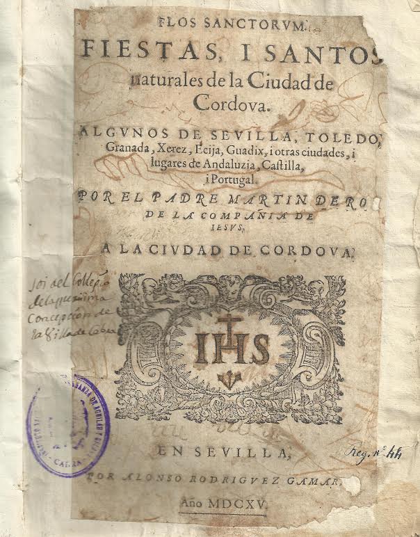 actualidad 20.07.15 LIBRO DE LA SEMANA “Flos sanctorum: fiestas, i Santos naturales de la ciudad de Cordova, algunos de Sevilla, Toledo, Granada, Xerez, Ecija, Guadix, i otras ciudades, i lugares de Andaluzia, Castilla, i Portugal” por el Padre Martin de Roa (Sevilla, 1615)