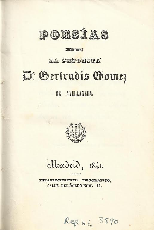 Poesías de la señorita D.ª Gertrudis Gomez de Avellaneda.-- Madrid : [s.n.], 1841 (establecimiento tipográfico, calle del sordo num. 11).