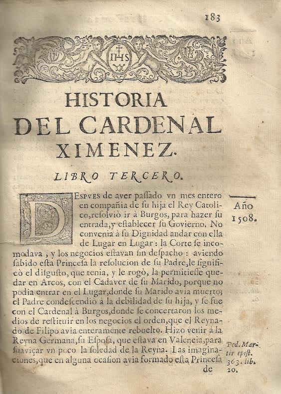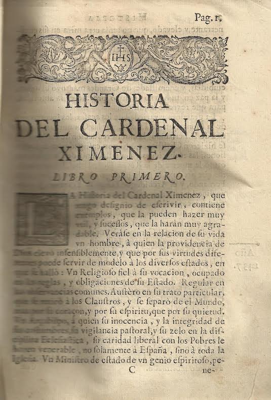 - El primero: “La historia del cardenal Ximenez, que tengo designio de escribir, contiene ejemplos que la pueden hacer muy útil y sucesos que le harán muy agradable…”.