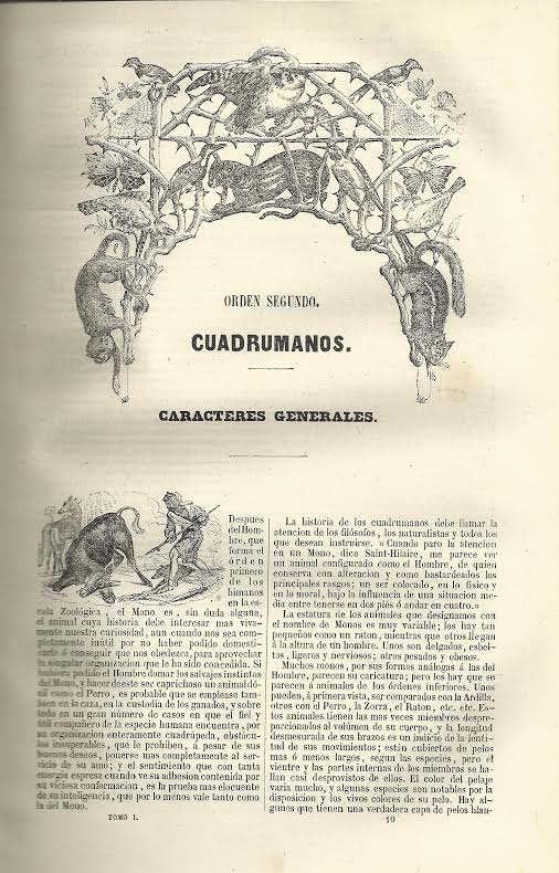 En el prólogo dicen: “recorreremos esa inmensa cadena de seres que desde el hombre va descendiendo hasta el imperceptible infusorio, y desde el robusto cedro hasta el humilde liquen, deteniéndonos en todos aquellos que, o por sus formas, o por alguna extraña particularidad de su organismo, o por lo admirable de su instinto, o por sus usos interesan generalmente”. Son dos grandes secciones las que se describen: la Zoología y la Botánica, pasando posteriormente a la Mineralogía. El tratado de Geología que incorporan lo consideran como “la cúpula de este grandioso edificio” que ofrecen.
