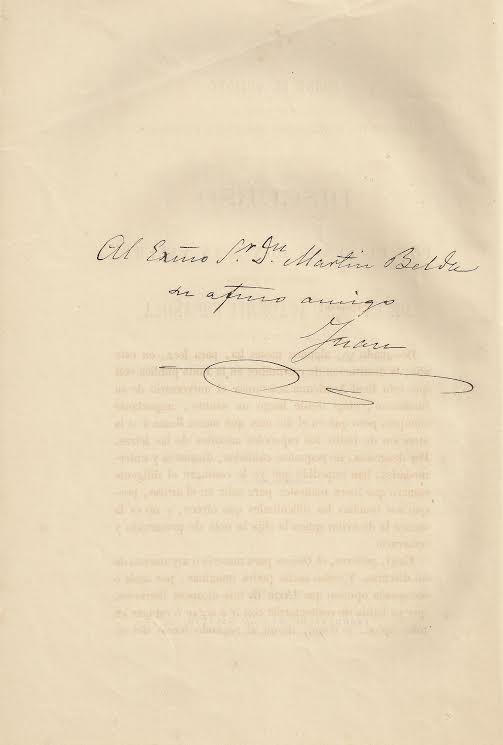 Ms.: “Al Excmo. Sr. Dn. Martín Belda su afmo. amigo Juan”.