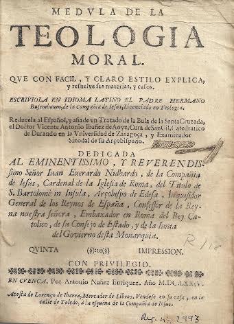 “Médula de la teología moral” de Busembaum, traducida por Vicente Antonio Ibáñez de Aoyz (Cuenca, 1674)