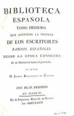 Biblioteca española : tomo primero que contiene la noticia de los escritores rabinos españoles ... / su autor D. Joseph Rodriguez de Castro.-- En Madrid : en la Imprenta Real de la Gazeta, 1781.