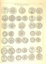 En cuanto a las láminas de monedas se adjuntan las correspondientes a la n.º 1 hasta la n.º 69. Hay dos hojas plegables: Privilegio de la Reina Doña Urraca concedido en 1116 al Abad del monasterio de Sahagún para labrar moneda y Privilegio del rey Don Alfonso VII concedido en 1119, también al Abad del monasterio de Sahagún para labrar moneda. Las láminas de grabados de reyes son de Pedro I, Juan I, Juan II, Isabel I y Fernando V. Continúa con dos láminas de sellos de Alfonso XI, Alfonso IX y D.ª Constanza (mujer de Fernando IV). Hay más láminas de grabados de reyes de España: Carlos I, Felipe II, Felipe III, Felipe IV, Carlos II, Felipe V, Luis I, Fernando VI, Carlos III, Carlos IV, Fernando VII e Isabel II.