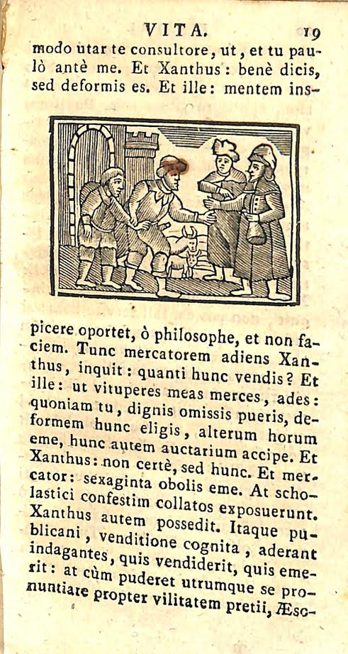 Traemos como Libro de la Semana las fábulas de Esopo, en una edición latina dada a la estampa en Madrid (Matriti) en 1825, en la imprenta de la viuda de Plácido Barco López. Plácido Barco (1747; 1803), impresor y librero en Madrid, trabajó para la Real Compañía en 1787. Años antes, en 1782, pasó a sus manos la imprenta de Manuel Martín, en cuyos talleres, dicen, fue aprendiz. Tras su fallecimiento en 1803, la viuda, de segundas nupcias, desarrolló la labor en la calle de la Cruz hasta 1825, acuñando marca propia.