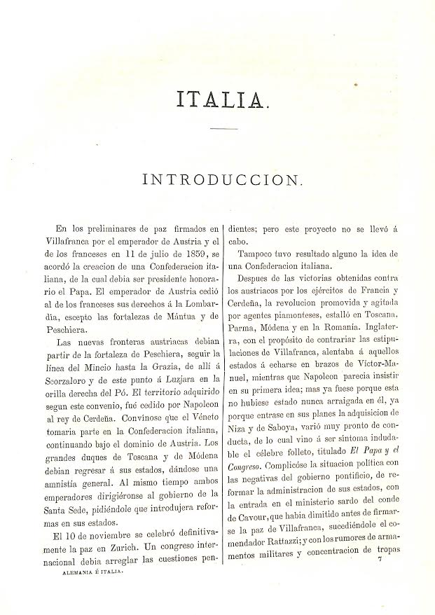 Alemania é Italia en 1866 : apuntes para un libro con datos, noticias y documentos sobre la guerra de dicho año recogidos en el teatro de la misma / por Nilo Maria Fabra. Edición: 1ª ed. española bajo la dirección de Joaquin Maldonado. Publicación: Madrid : Rubio y Compañia, 1867 (Imprenta a cargo de J.E. Morete,1868)