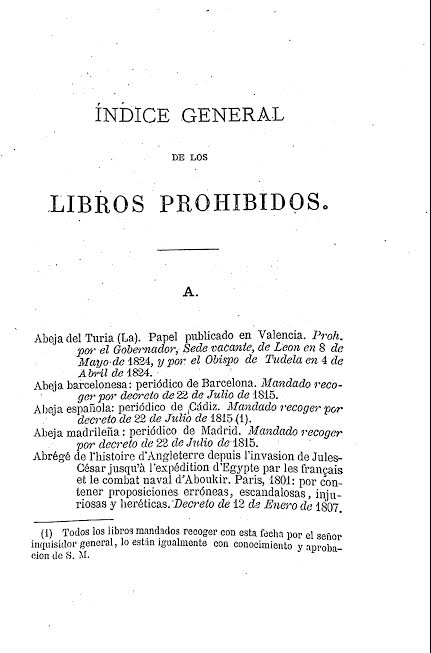 La última colección española que se hizo del ÍNDICE en 1814 solo contenía, en cuanto a España, los prohibidos por la Inquisición española hasta 1819, con fuerza de obligar a todos los dominios españoles. La edición que presentamos contiene, además, todos los escritos que desde esta época hasta fin de 1872 han sido prohibidos en todas las diócesis de España por sus respectivos prelados.