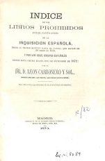 Indice de los libros prohibidos por el Santo Oficio de la Inquisición Española desde el primer Decreto hasta el último, que se espidió en 29 de mayo de 1819, y por los Rdos. Obispos españoles desde esta fecha hasta fin de diciembre de 1872 / por León Carbonero y Sol.-- Madrid : [s.n.], 1873 (Imprenta de D. Antonio Pérez Dubrull)