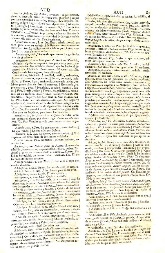 El latinista ha introducido en su Diccionario las palabras y expresiones de todos los tiempos que tengan autoridades con que comprobarse. De esta forma, “los maestros no pondrán en manos de sus discípulos sino los autores clásicos; porque el autor que da autoridad en el diccionario a las voces, dará también a conocer con solo su nombre su pureza”. Aconseja que cuando se encuentre alguna voz sin autoridad se tenga por sospechosa “en cuanto a la pureza y para estar en la inteligencia de que ningún autor clásico la ha usado, lo cual sucede con especialidad en las voces facultativas de artes y ciencias”. Su trabajo lo dirige, también, a todo género de personas aficionadas a la lectura de los libros latinos.