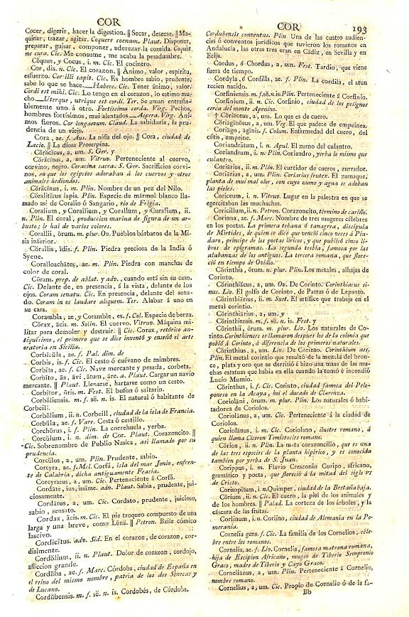 En la introducción argumenta que en todas las voces se exponen con abreviatura sus accidentes y propiedades; “se nota la cantidad de sus sílabas, a lo menos las dudosas; se pone en castellano su significado propio; se añaden equivalentes para mayor inteligencia, y aun otras voces que parecen sinónimas; se siguen las diferentes acepciones, y a estas las frases cuando la voz tiene varias construcciones, a las cuales se han añadido en esta edición muchos refranes latinos con sus equivalentes castellanos, y muchas frases proverbiales”.