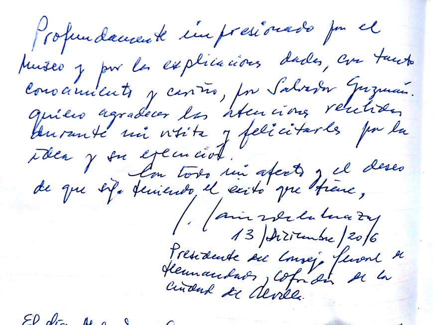 Durante su visita le acompañó el presidente de la Fundació Aguilar y Eslava, Salvador Guzmán, quien fue comentándole todos los detalles de los contenidos expositivos del Museo de la Pasión, en los que se hace especial atención en explicar cómo sería aquella "Primera Semana Santa de la Historia".