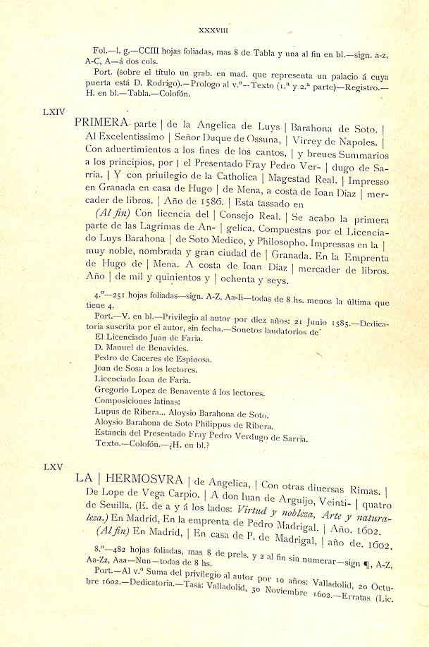 Con mayor detalle y precisión bibliográfica va descrita lo que pudiéramos llamar la “Biblioteca de Don Quijote”, incluyendo en ella no sólo los citados nominalmente o en globo en el “donoso y grande escrutinio que el cura y el barbero hicieron en la librería de nuestro ingenioso hidalgo” (Capítulo VI), sino también otros varios que en el curso de la fábula se mencionan. No falta, por tanto, la Angélica del lucentino Barahona de Soto: “Cansóse el cura de ver más libros, y así a carga cerrada, quiso que todos los demás se quemasen; pero ya tenía abierto uno el barbero que se llamaba Las lágrimas de Angélica. Lloráralas yo, dijo el cura en oyendo el nombre, si tal libro hubiera mandado quemar, porque su autor fue uno de los famosos poetas del mundo, no sólo de España, y fue felicísimo en la traducción de algunas fábulas de Ovidio”.