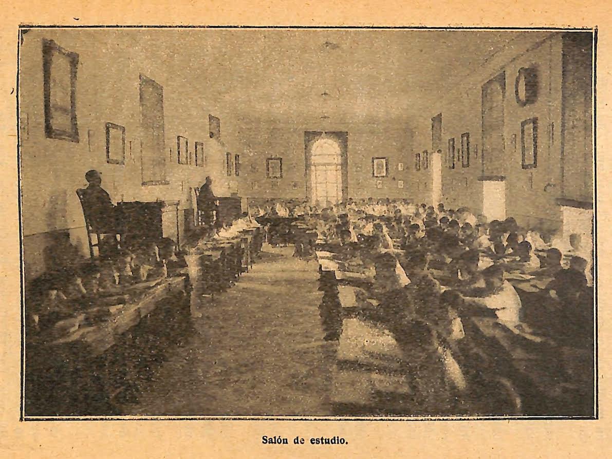 De los aposentos de los colegiales dice el antiguo profesor: “Los dormitorios ocupan uno de los lados de las naves, en tanto el otro se destina a amplio pasillo. Mientras se construyen camas de tipo único, que serán propiedad del Colegio, cada alumno, al ingresas, lleva la suya y la cantidad de ropa que marcan las circulares-reglamento. En cada dormitorio -provisto de la puerta y ventana correspondiente- duermen dos alumnos generalmente. Hay tres o cuatro compartimientos amplios capaces para diez o doce muchachos. Distribuidos convenientemente están los dormitorios destinados a los regentes. Además hay un sereno de vigilancia, así como un botiquín de urgencia. Uno de los médicos de la ciudad lo es del Colegio”.