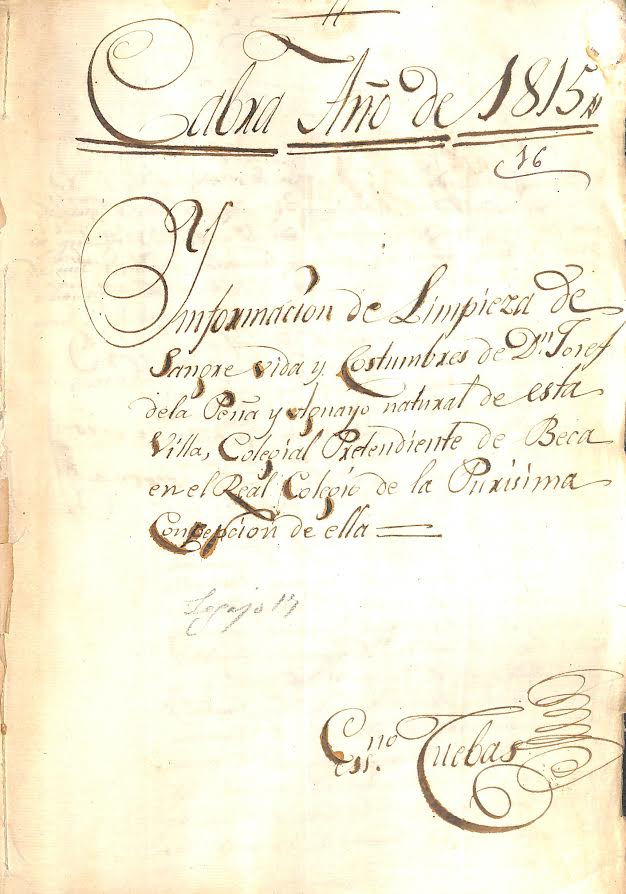 Hay otro documento muy valioso en el Archivo Histórico de la Fundación Aguilar y Eslava, referido a Peña y Aguayo, que comentaremos en otro momento: “Información de limpieza de sangre, vida y costumbres de Dn. Josef de la Peña y Aguayo, natural de esta villa, colegial pretendiente de beca en el Real Colegio de la Purísima Concepción de ella” (1815).
