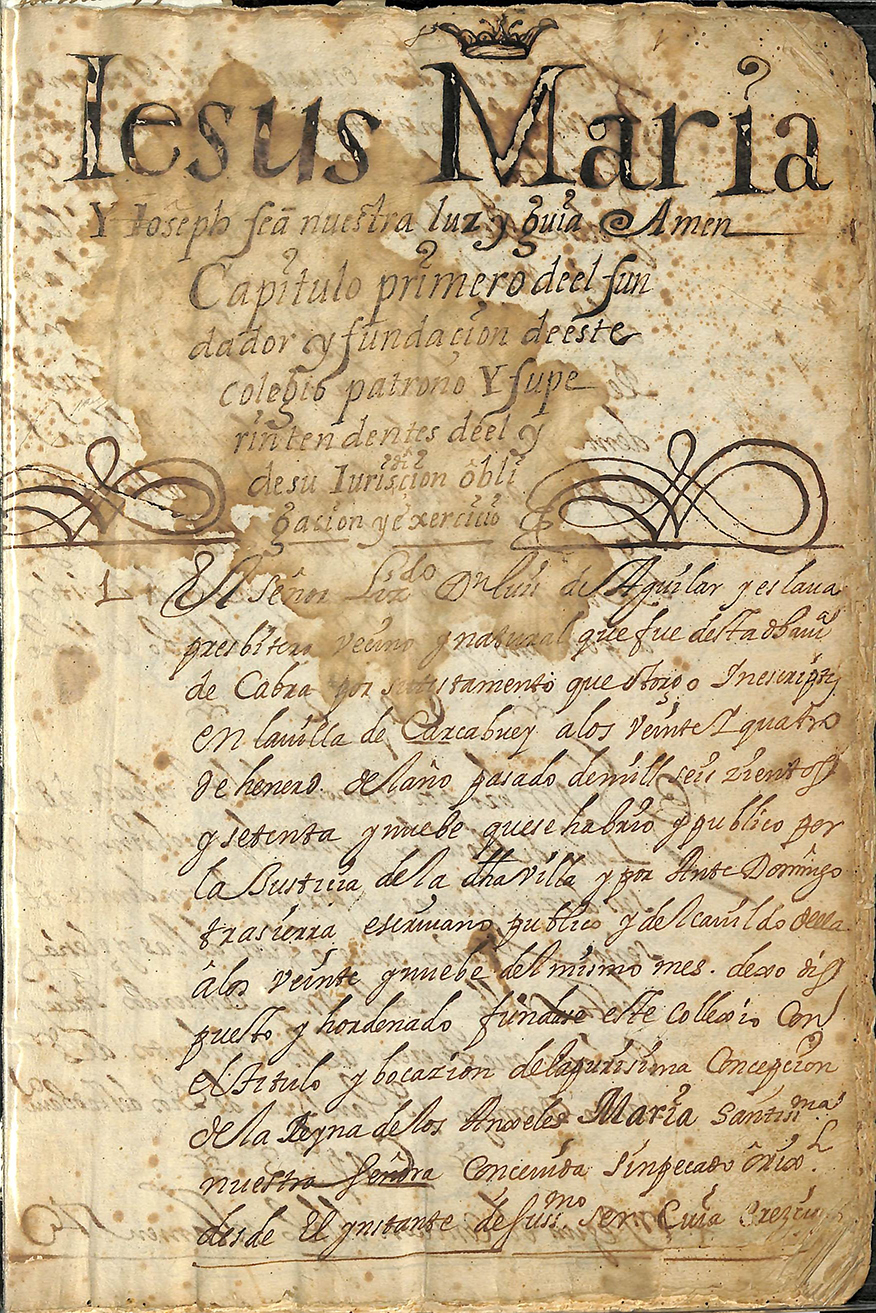 Constituciones del Real Colegio de la Purísima Concepción de Cabra (1700)