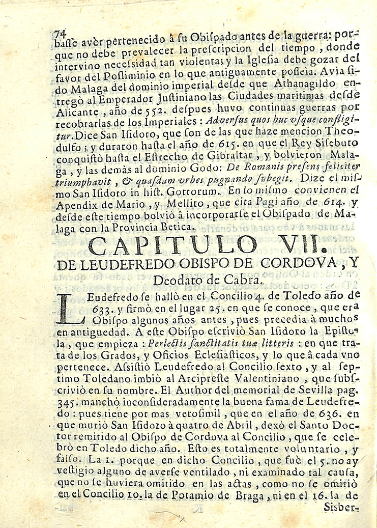 Nombra en este Catálogo a DEODATO, obispo de Cabra, quien suscribió en el IV Concilio de Toledo [633] en el lugar 22. También se halló en el VI (638) y en el VII (646 o 647).