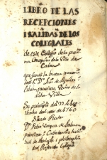 Libro de las recepciones y salidas de los colegiales de este Colegio de la Purísima Concepción de la villa de Cabra. Se principió día 22 de septiembre de 1760, siendo rector D. Pedro Vázquez de Salazar, presbítero, catedrático habitual de Teología y Filosofía del referido Colegio.