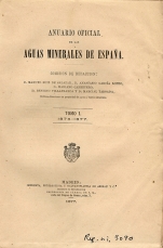 Anuario oficial de las aguas minerales de España.-- T. I. (1876/1877).-- Madrid : 1878 (Imprenta, estereotipia y galvanoplastia de Aribau y C.ª). Comisión de redacción: Manuel Ruiz de Salazar, Anastasio García López, Mariano Carretero, Benigno Villafranca y Marcial Taboada, médicos-directores en propiedad de aguas y baños minerales.