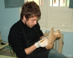 El joven restaurador, natural de Padua (Italia), viene realizando distintas labores de limpieza, consolidación y reposición de plumaje u otros elementos en los animales que se exponen tanto en la sala de piezas principales o en la sala Juan Carandell, donde se ubica la recreación del gabinete de Historia Natural. En esta primera fase, el restaurador viene trabajando -en un taller habilitado al efecto en una de las dependencias de la sede de la Fundación e Instituto- en el ejemplar de Lince Ibérico, las dos tortugas marinas, un cachorro de león o el zorro volador (identificado en su momento como vampiro). Asimismo se intervendrán dos de las piezas más significativas como son los cabritos siameses o el cordero bicéfalo.