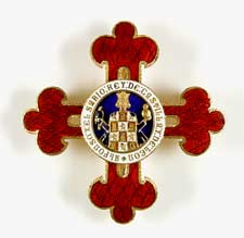 La Gran Cruz de la Orden de Alfonso X el Sabio tiene esmaltada la efigie de ese monarca, de medio cuerpo, con corona y vestido de un manto cuadriculado, donde figuran, en sus colores, los emblemas heráldicos de León y Castilla. La figura del rey empuña en la mano derecha un cetro terminado por un águila explayada, y sostiene con la izquierda un globo rematado con una cruz. En torno corre, en letra gótica negra, la inscripción ALFONSO X EL SABIO, REY DE CASTILLA Y DE LEÓN.
