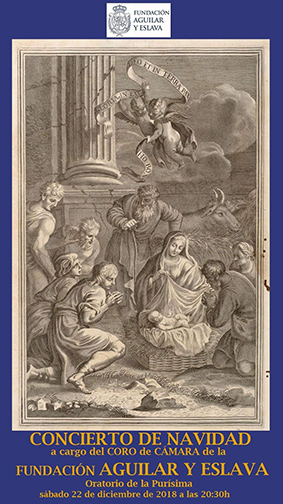 actualidad 13.01.19 Concierto de Navidad del Coro de Cámara de la Fundación Aguilar y Eslava. El 22 de diciembre de 2018 se celebró en el Oratorio de la Purísima de la Fundación Aguilar y Eslava el tradicional concierto de Navidad del Coro de Cámara de la Fundación Aguilar y Eslava. En esta ocasión titulado: "Et in terra pax", resultó muy del agrado del público asistente.