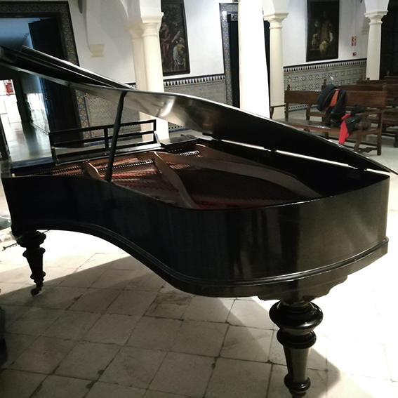 El nuevo piano del Instituto-Fundación Aguilar y Eslava ha llegado procedente de Málaga y es fruto de una donación particular. Se trata de un instrumento de finales del siglo XIX. fabricado por Julius Blüthner en Leipzig (Alemania) y que por su número de serie 24001, se puede fecha hacia 1880.