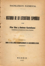Dentro de nuestro espacio LIBRO DESTACADO, traemos hoy una de sus publicaciones: HISTORIA DE LA LITERATURA ESPAÑOLA, obra de texto para el Bachillerato elemental, ceñida escrupulosa al cuestionario oficial; así se manifiesta en la portada. El volumen está editado por Huelves y Compañía, Hilarión Eslava 5, Madrid 1929. Son cuarenta y cuatro lecciones distribuidas en ciento cincuenta y cuatro páginas.