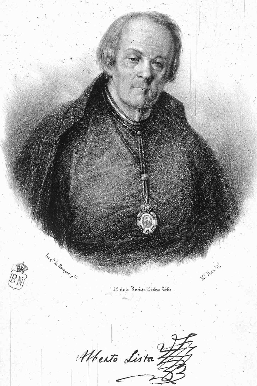 De Alberto Lista y Aragón (1775;1848), matemático, poeta, periodista y crítico literario (también clérigo), destacan en su biografía la labor pedagógica y ensayística que desarrolló; recogida fundamentalmente en las publicaciones Lecciones de literatura dramática (1836) y Ensayos literarios y críticos (1844). Los modelos de Alberto Lista fueron los escritores del siglo XVII, y en sus textos recurría con frecuencia a los recuerdos personales, según señala la crítica. Los argumentos que expresa anuncian la llegada del Romanticismo.