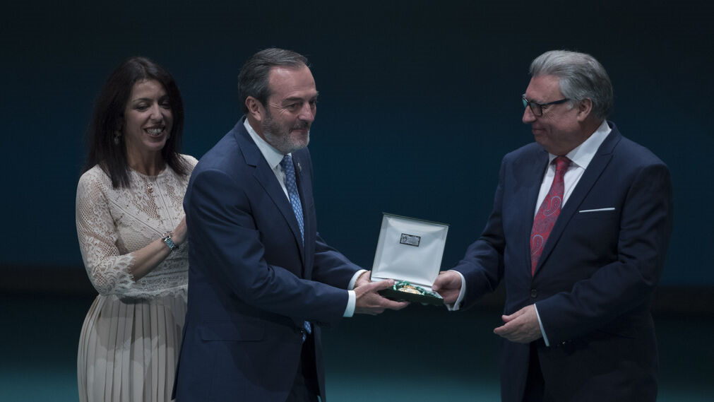 actualidad 07.03.19 Entrega de la Medalla de Oro de Andalucía 2019 a la Fundación Aguilar y Eslava El Teatro de la Maestranza de Sevilla acogió el jueves 28 de febrero la gala de entrega de distinciones de Hijos Predilectos y Medallas de Andalucía 2019, y que en esta edición distinguía a la Fundación Aguilar y Eslava entre los galardonados. Por parte de la institución tricentenaria egabrense, recibieron la Medalla el Director del Instituto, Francisco Ortiz, y el Presidente de la Fundación, Salvador Guzmán, que estuvieron arropados en el acto por una amplia representación formada por profesores, patronos y colaboradores de la Fundación, Alcalde de cabra y concejales de su Ayuntamiento.