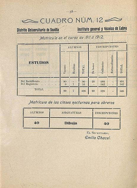 Acaso sea una asignatura pendiente el descubrir las huellas de las primeras alumnas del Instituto de Cabra. La ordenación de su archivo histórico puede contribuir a la investigación y estudio de cómo se desarrolló la incorporación de la mujer en el Centro Educativo, como alumna y como profesora.