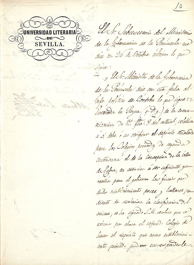 Con membrete de la Universidad Literaria de Sevilla leemos: