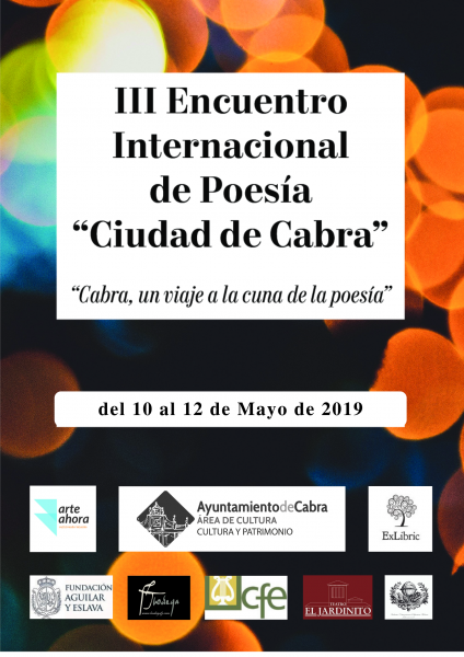 Del 10 al 12 de mayo tuvo lugar en nuestra ciudad el tercer encuentro internacional de Poesía y la entrega del premio "Ciudad de Cabra" que organiza la asociación Arte Ahora en colaboración con otras entidades e instituciones como la Fundación Aguilar y Eslava.